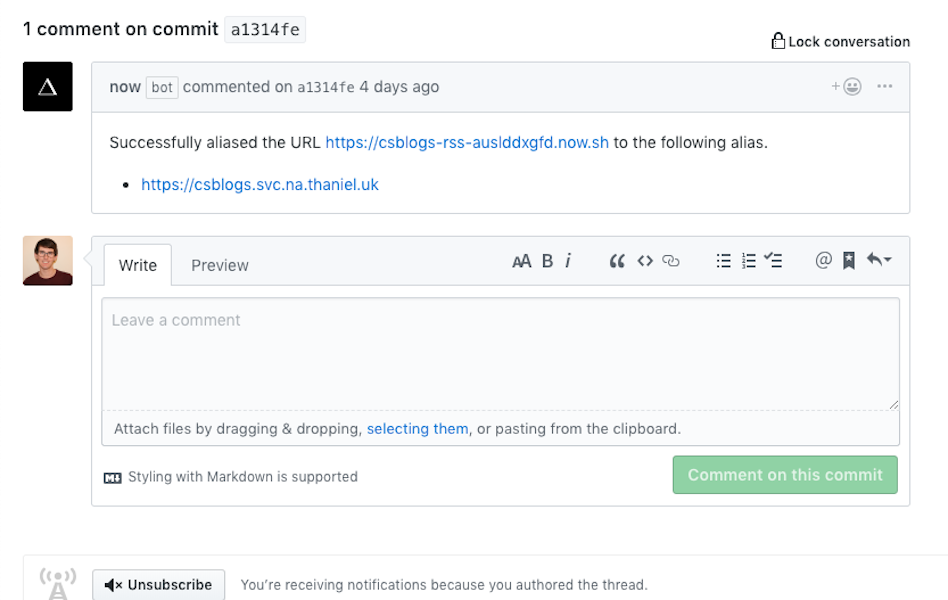 I’ve used Zeit Now for the first time to do my first serverless deployment too, which means every time I push a new build to GitHub, it’s automatically built and an instance of the service is deployed and the domain moved over to it, meaning zero downtime upgrades as well.
